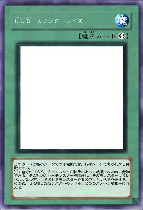 | このカードは相手ターンでのみ発動でき、相手ターンでも手札から発動できる。 ①:自分の「SS」Sモンスターが相手によって破壊された時に発動できる。その破壊されたモンスターを除外し、そのモンスターよりレベルが2つ高い「SS」SモンスターをEXデッキからS召喚する。その後、S召喚したモンスターのレベル×200ダメージを相手に与える。 | |||