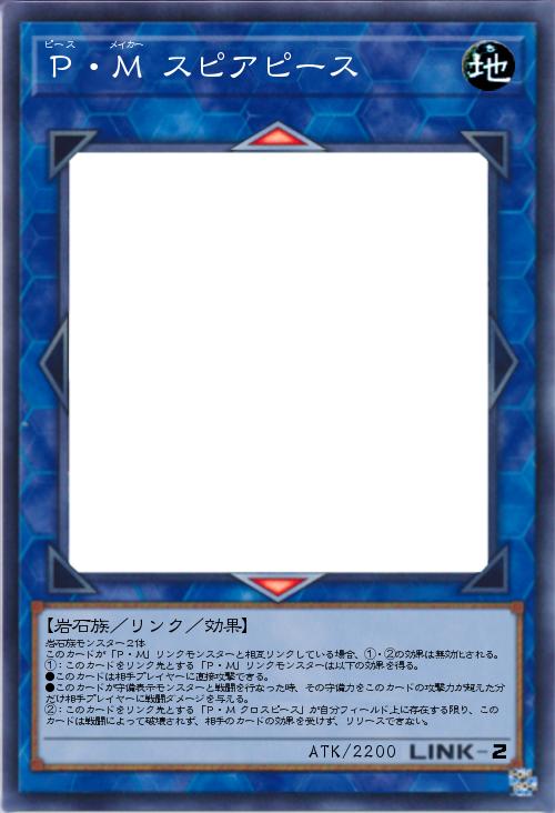 | 岩石族モンスター2体 このカードが「P・M」リンクモンスターと相互リンクしている場合、①・②の効果は無効化される。 ①:このカードをリンク先とする「P・M」リンクモンスターは以下の効果を得る。 ●このカードは相手プレイヤーに直接攻撃できる。 ●このカードが守備表示モンスターと戦闘を行なった時、その守備力をこのカードの攻撃力が超えた分だけ相手プレイヤーに戦闘ダメージを与える。 ②:このカードをリンク先とする「P・M クロスピース」が自分フィールド上に存在する限り、このカードは戦闘によって破壊されず、相手のカードの効果を受けず、リリースできない。 | |||