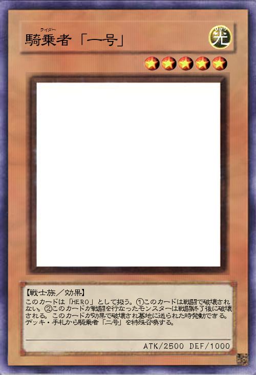 「騎乗者シリーズ第一弾。仮面ライダーを元にしたデザイン。仮面ライダーは何があっても負けない!負ける時は次のライダーに託す時だけ!でも除外とかバウンスには弱い。