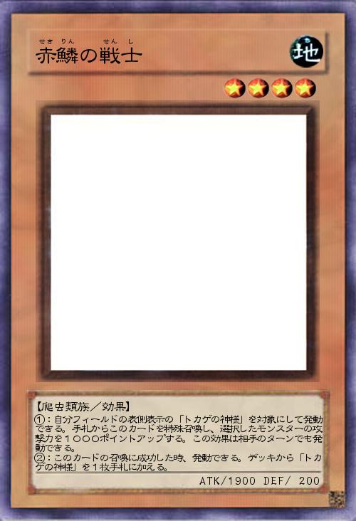 | ①:自分フィールドの表側表示の「トカゲの神様」を対象にして発動できる。手札からこのカードを特殊召喚し、選択したモンスターの攻撃力を1000ポイントアップする。この効果は相手のターンでも発動できる。 ②:このカードの召喚に成功した時、発動できる。デッキから「トカゲの神様」を1枚手札に加える。 | |||