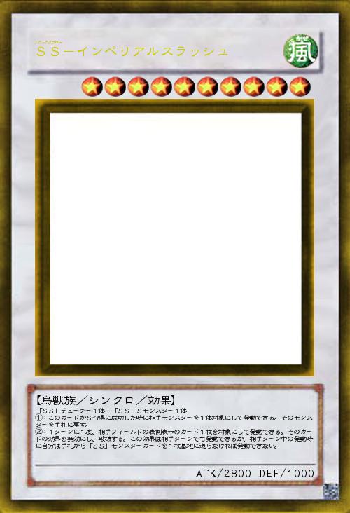 | 「SS」チューナー1体+「SS」Sモンスター1体 ①:このカードがS召喚に成功した時に相手モンスターを1体対象にして発動できる。そのモンスターを手札に戻す。 ②:1ターンに1度、相手フィールドの表側表示のカード1枚を対象にして発動できる。そのカードの効果を無効にし、破壊する。この効果は相手ターンでも発動できるが、相手ターン中の発動時に自分は手札から「SS」モンスターカードを1枚墓地に送らなければ発動できない。 | |||