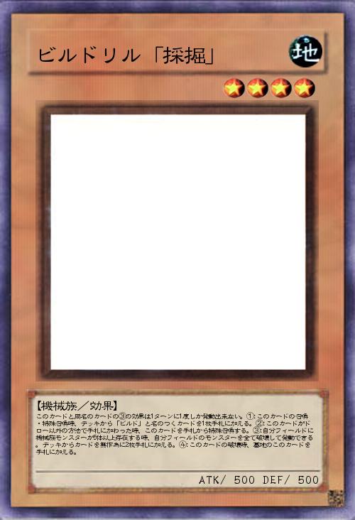| このカードと同名のカードの③の効果は1ターンに1度しか発動出来ない。①:このカードの召喚・特殊召喚時、デッキから「ビルド」と名のつくカードを1枚手札に加える。②:このカードがドロー以外の方法で手札に加わった時、このカードを手札から特殊召喚する。③:自分フィールドに機械族モンスターが5体以上存在する時、自分フィールドのモンスターを全て破壊して発動できる。デッキからカードを無作為に2枚手札に加える。④:このカードの破壊時、墓地のこのカードを手札に加える。 | |||