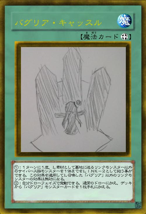 カードの効果はお互いサイバース族モンスターを1体LINK-2として扱えるものの、それを利用して出したリンクモンスターは効果が無効になるデメリット。「バグリア」のみ効果が無効にならない上、実質2ドローになるサーチを持つのでかなり自分寄りの効果になっています。相手のリンク召喚もサポートしているかと思えば地味にコントロールするというお城。」(2017-08-27 15:52)