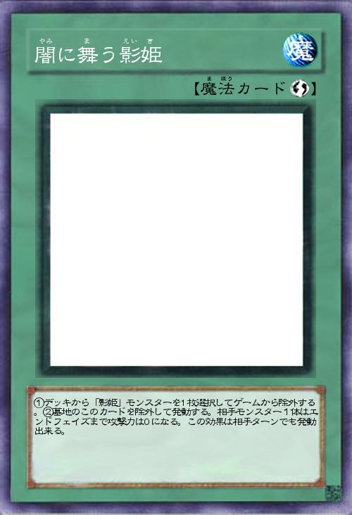 | ①デッキから「影姫」モンスターを1枚選択してゲームから除外する。②墓地のこのカードを除外して発動する。相手モンスター1体はエンドフェイズまで攻撃力は0になる。この効果は相手ターンでも発動出来る。 | |||