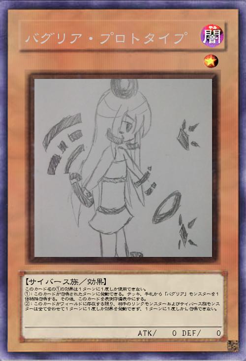 「バグリア」1体目はプロトタイプ。といっても変異した後なので完成体だったりする。リクルート役で「デジタリア・プロトタイプ」と同じく3積み枠。ついでにその「バグ」の拡散でリンクモンスターとサイバース族に影響を及ぼす。このカード1枚ですぐにLINK2~3につなげられるので出張役としても適任。