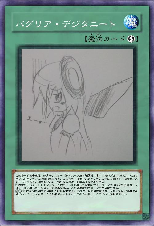 まさかの速攻魔法モンスター。「デジタリア・プロトタイプ」とは逆の働きをします。あちらが墓地肥やし兼効果取得だったのに対し、こちらはデッキサルベージ兼効果取得。速攻魔法なので相手ターンでも発動でき、「バグリア」特有のロック永続効果を利用できますし、「バグリア」リンクモンスターの効果も利用できたりします。故に後半ほどパワーカード。純粋にサイバース族レベル1モンスター速攻魔法としても十分に出張できます。