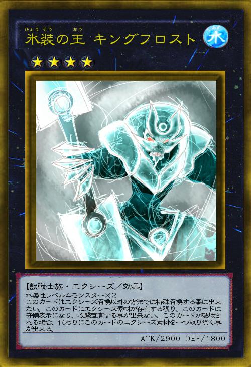 水属性レベル4モンスター×2 このカードはエクシーズ召喚以外の方法では特殊召喚する事は出来ない。このカードにエクシーズ素材が存在する限り、このカードは守備表示になり、攻撃宣言する事が出来ない。このカードが破壊される場合、代わりにこのカードのエクシーズ素材を一つ取り除く事が出来る。 |