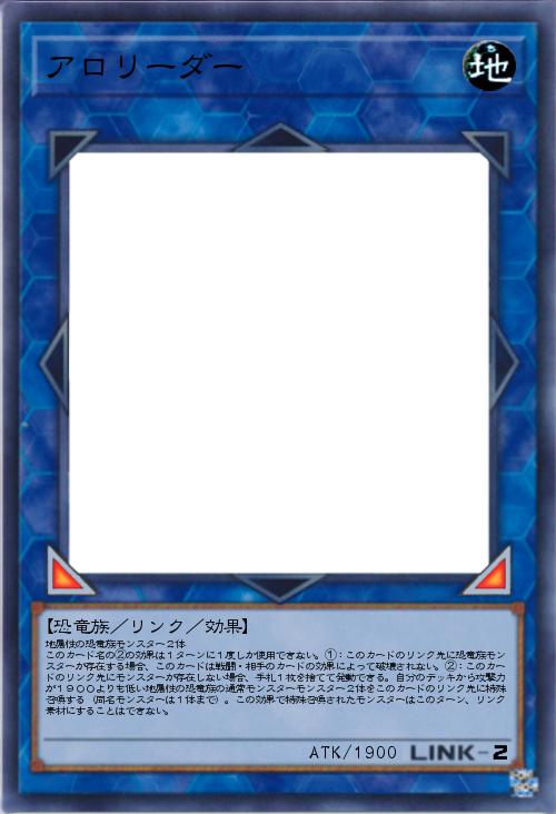 | 地属性の恐竜族モンスター2体 このカード名の②の効果は1ターンに1度しか使用できない。①:このカードのリンク先に恐竜族モンスターが存在する場合、このカードは戦闘・相手のカードの効果によって破壊されない。②:このカードのリンク先にモンスターが存在しない場合、手札1枚を捨てて発動できる。自分のデッキから攻撃力が1900よりも低い地属性の恐竜族の通常モンスターモンスター2体をこのカードのリンク先に特殊召喚する(同名モンスターは1体まで)。この効果で特殊召喚されたモンスターはこのターン、リンク素材にすることはできない。 | |||