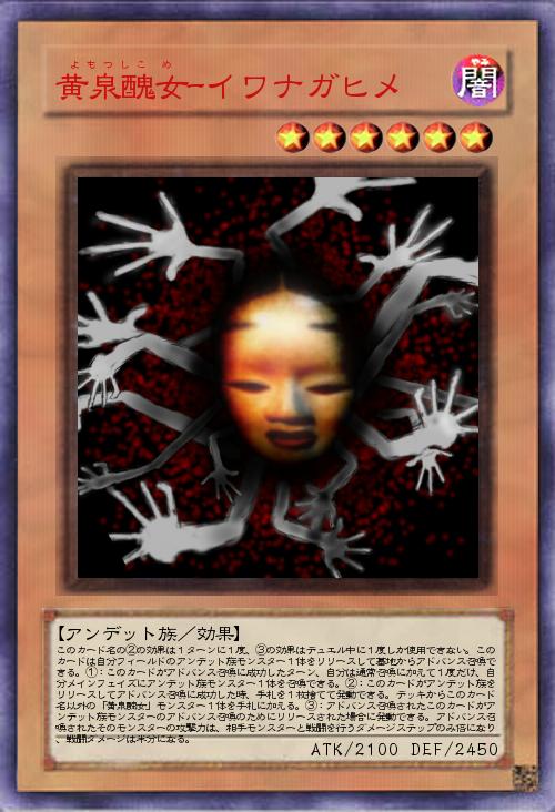 3体の黄泉醜女の内の1体で、中でも重要な1体。上級モンスターながら耐性が無いため脆いものの、①のルール効果と②の誘発効果により消費分を速やかに回収。