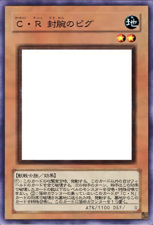 「C・R」でもブラホとか撃って一掃に成功した直後にコイツを召喚、4枚くらい破壊しての直接攻撃が成功すれば豚ロックができちゃいます。……なんかそう考えるとヤバげな気がしてきた。