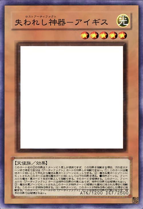 | このカード名の②の効果は1ターンに1度しか使用できず、この効果を発動する場合、次の自分ターン終了時まで自分は「アーティファクト」カードの効果しか発動できない。①:このカードは魔法カード扱いとして手札から魔法&罠カードゾーンにセットできる。②:魔法&罠カードゾーンにセットされたこのカードは速攻魔法カード扱いとして以下の効果を得る。●相手ターンに、フィールドの魔法・罠カード1枚を対象として発動できる。そのカードを破壊する。このターン、フィールドの「アーティファクト」カードは相手の効果の対象にならず、相手の効果では破壊されない。③:魔法&罠ゾーンにセットされたこのカードが相手ターンに破壊され墓地に送られた場合に発動する。このカードを特殊召喚する。④:相手ターンに、このカードが特殊召喚に成功した場合に発動する。このターン、フィールドの「アーティファクト」カードは相手の効果の対象にならず、相手の効果 | |||