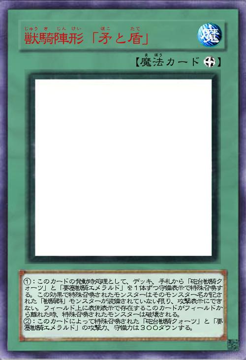 ●このターン、自分は「獣騎」通常モンスターおよび「獣騎群」モンスター以外のモンスターを特殊召喚できない。」(2017-09-17 06:26)