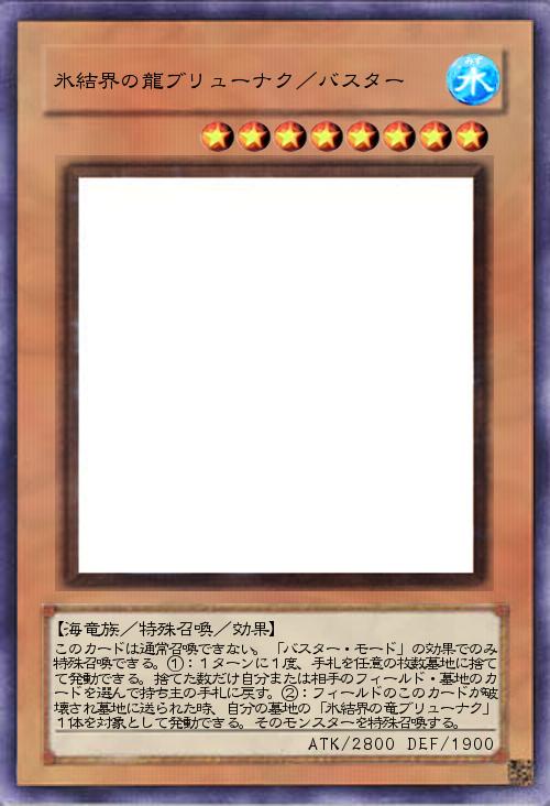 | このカードは通常召喚できない。「バスター・モード」の効果でのみ特殊召喚できる。①:1ターンに1度、手札を任意の枚数墓地に捨てて発動できる。捨てた数だけ自分または相手のフィールド・墓地のカードを選んで持ち主の手札に戻す。②:フィールドのこのカードが破壊され墓地に送られた時、自分の墓地の「氷結界の竜ブリューナク」1体を対象として発動できる。そのモンスターを特殊召喚する。 | |||