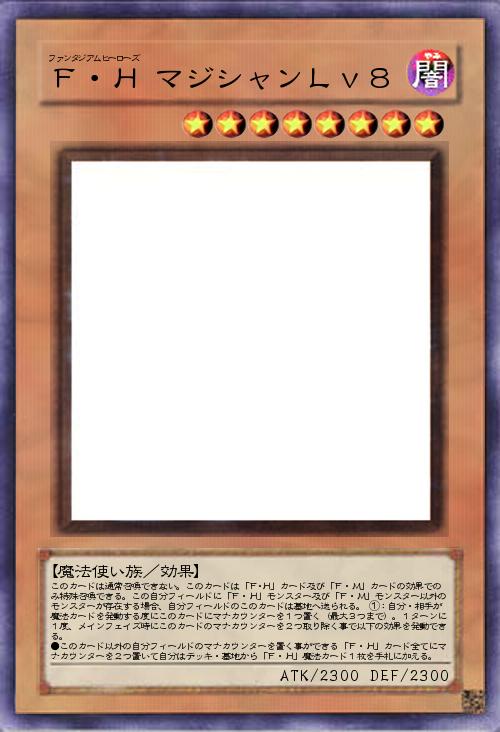 | このカードは通常召喚できない。このカードは「F・H」カード及び「F・M」カードの効果でのみ特殊召喚できる。この自分フィールドに「F・H」モンスター及び「F・M」モンスター以外のモンスターが存在する場合、自分フィールドのこのカードは墓地へ送られる。 ①:自分・相手が魔法カードを発動する度にこのカードにマナカウンターを1つ置く(最大3つまで)。1ターンに1度、メインフェイズ時にこのカードのマナカウンターを2つ取り除く事で以下の効果を発動できる。 ●このカード以外の自分フィールドのマナカウンターを置く事ができる「F・H」カード全てにマナカウンターを2つ置いて自分はデッキ・墓地から「F・H」魔法カード1枚を手札に加える。 | |||