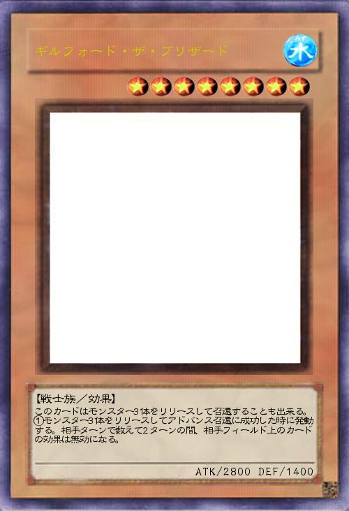 | このカードはモンスター3体をリリースして召還することも出来る。 ①モンスター3体をリリースしてアドバンス召還に成功した時に発動する。相手ターンで数えて2ターンの間、相手フィールド上のカードの効果は無効になる。 | |||