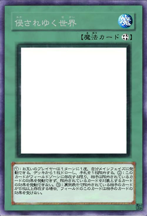 | ①:お互いのプレイヤーは1ターンに1度、自分メインフェイズに発動できる。デッキから1枚ドローし、手札を1枚除外する。②:このカードがフィールドゾーンに存在する限り、相手は除外されているカードの効果を発動できず、除外されているカードを対象とするカードの効果を発動できない。③:裏側表示で除外されている相手のカードが5枚以上存在する場合、フィールドのこのカードは相手のカードの効果を受けない。 | |||