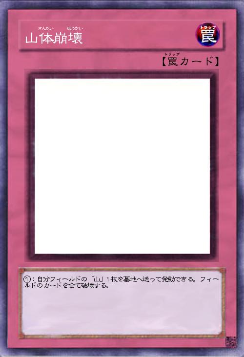 | ①:自分フィールドの「山」1枚を墓地へ送って発動できる。フィールドのカードを全て破壊する。 | |||