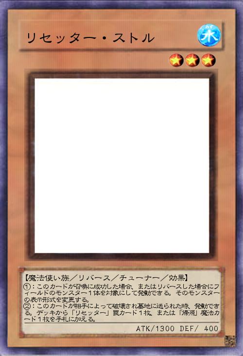 防御性能はちょいと他の「リセッター」モンスターには劣るものの、リバースや被破壊で発動する効果ばかりで全体的に低速な「リセッター」の中では、召喚時発動する「早い」効果持ちのこいつは1番扱いやすいモンスターですね。
