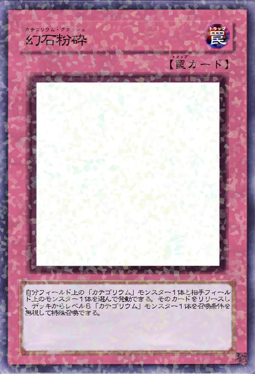 | 自分フィールド上の「カテゴリウム」モンスター1体と相手フィールド上のモンスター1体を選んで発動できる。そのカードをリリースし、デッキからレベル8「カテゴリウム」モンスター1体を召喚条件を無視して特殊召喚できる。 | |||