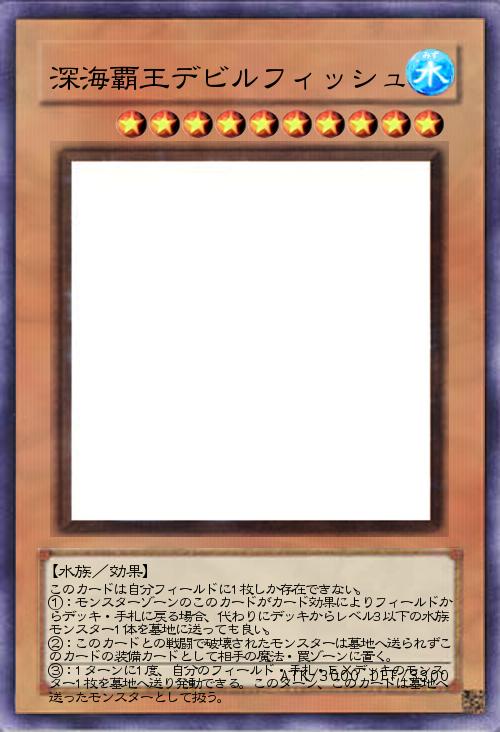 | このカードは自分フィールドに1枚しか存在できない。 ①:モンスターゾーンのこのカードがカード効果によりフィールドからデッキ・手札に戻る場合、代わりにデッキからレベル3以下の水族モンスター1体を墓地に送っても良い。 ②:このカードとの戦闘で破壊されたモンスターは墓地へ送られずこのカードの装備カードとして相手の魔法・罠ゾーンに置く。 ③:1ターンに1度、自分のフィールド・手札・EXデッキのモンスター1枚を墓地へ送り発動できる。このターン、このカードは墓地へ送ったモンスターとして扱う。 | |||