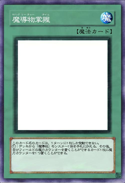 | このカード名のカードは、1ターンに1枚しか発動できない。 ①:デッキから「魔導物」モンスター1体を手札に加える。その後、自分フィールドの魔力カウンターを置くことができるカード1枚に魔力カウンターを1つ置くことができる。 | |||