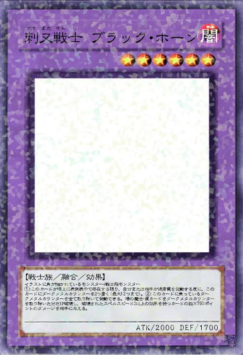 | イラストに角が描かれているモンスター+戦士族モンスター ①:このカードが場上に表側表示で存在する限り、自分または相手が通常罠を発動する度に、このカードにダークメタルカウンターを2つ置く(最大12つまで)。②:このカードに乗っているダークメタルカウンターを全て取り除いて発動できる。場の魔法・罠カードをダークメタルカウンターを取り除いた分だけ破壊し、破壊されたスペルスピード2以上の効果を持つカードの数×750ポイントのダメージを相手に与える。 | |||
