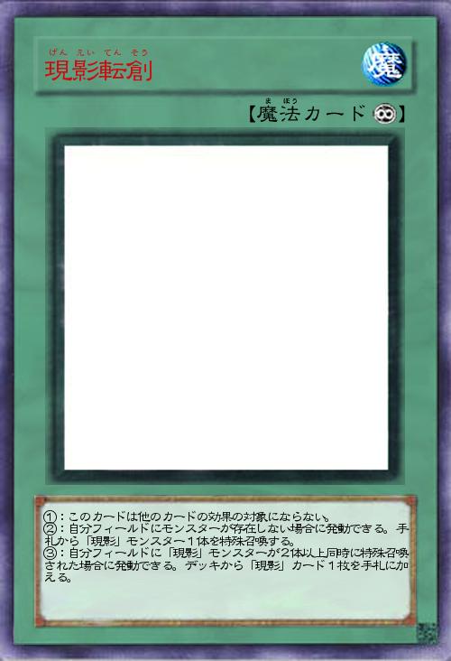 | ①:このカードは他のカードの効果の対象にならない。 ②:自分フィールドにモンスターが存在しない場合に発動できる。手札から「現影」モンスター1体を特殊召喚する。 ③:自分フィールドに「現影」モンスターが2体以上同時に特殊召喚された場合に発動できる。デッキから「現影」カード1枚を手札に加える。 | |||