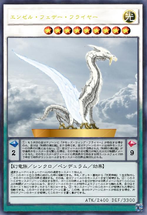 「登場したるはデモンズ・ウィングと対を為す白き幻魔の飛翔竜!虹眼の煌彩龍の相方となる白い龍エンゼル・フェザー・フライヤー…神聖なる力を感じる…。
