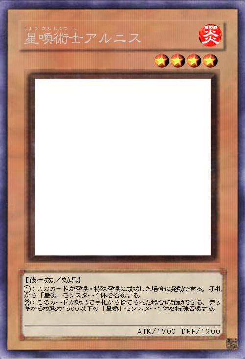 | ①:このカードが召喚・特殊召喚に成功した場合に発動できる。手札から「星喚」モンスター1体を召喚する。 ②:このカードが効果で手札から捨てられた場合に発動できる。デッキから攻撃力1500以下の「星喚」モンスター1体を特殊召喚する。 | |||