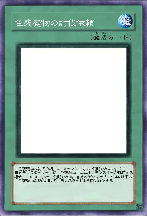 | 「色襲魔物の討伐依頼」は1ターンに1枚しか発動できない。(1):自分モンスターゾーンに「色襲魔物」ユニオンモンスターが存在する場合、1000LP払って発動できる。自分のデッキからレベル4以下の「色襲魔物の新人討伐者」モンスター1体を特殊召喚する。 | |||