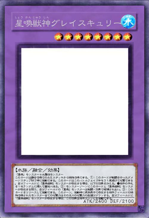 | 「星喚」モンスター+水属性モンスター このカードは融合召喚でのみEXデッキから特殊召喚できる。①:このカードが戦闘を行ったダメージステップ終了時に発動できる。このカードはこのバトルフェイズ中もう1度続けて攻撃できる。自分フィールドに「星喚術師」モンスターが存在する場合、以下の効果を加える。●相手の手札を1枚ランダムに選んで墓地へ送る。②:モンスターゾーンにこのカードと「星喚術師」モンスターが存在する限り、自分フィールドの「星喚」モンスターは戦闘・効果で破壊されない。③:このカードをリリースして発動できる。このターン、発動時に表側表示で存在する相手フィールドの特殊召喚されたモンスター全ての攻撃力はその元々の攻撃力の数値分ダウンする。自分フィールドに「星喚術師」モンスターが存在する場合、この効果は相手ターンにも発動できる。 | |||