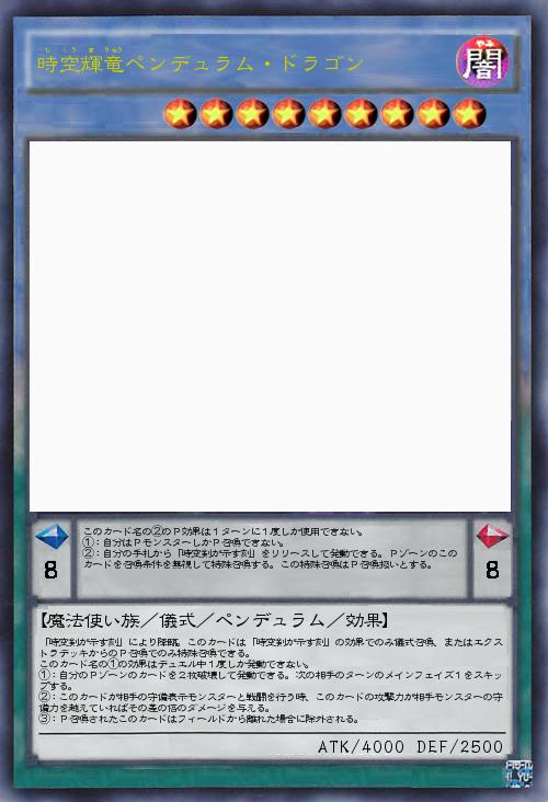 | このカード名の②のP効果は1ターンに1度しか使用できない。 ①:自分はPモンスターしかP召喚できない。 ②:自分の手札から「時空剣が示す刻」をリリースして発動できる。Pゾーンのこのカードを召喚条件を無視して特殊召喚する。この特殊召喚はP召喚扱いとする。 | |||