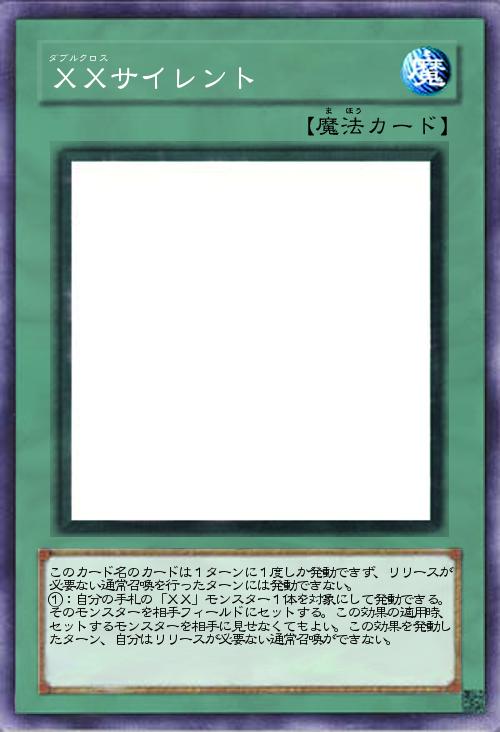 | このカード名のカードは1ターンに1度しか発動できず、リリースが必要ない通常召喚を行ったターンには発動できない。 ①:自分の手札の「XX」モンスター1体を対象にして発動できる。そのモンスターを相手フィールドにセットする。この効果の適用時、セットするモンスターを相手に見せなくてもよい。この効果を発動したターン、自分はリリースが必要ない通常召喚ができない。 | |||
