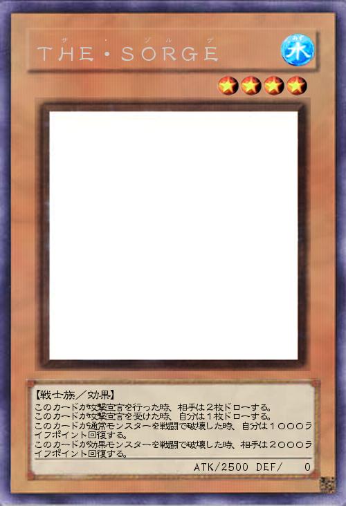 | このカードが攻撃宣言を行った時、相手は2枚ドローする。 このカードが攻撃宣言を受けた時、自分は1枚ドローする。 このカードが通常モンスターを戦闘で破壊した時、自分は1000ライフポイント回復する。 このカードが効果モンスターを戦闘で破壊した時、相手は2000ライフポイント回復する。 | |||