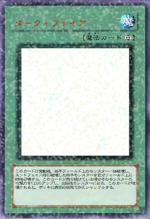 | このカードは発動後、相手フィールド上のモンスター一体破壊し、エンドフェイス時に破壊した相手モンスターを自分フィールド上に特殊召喚する。このカードが残り続けている場合そのモンスターの攻撃力を1200アップし、炎族性モンスターになる。このカードが破壊されると、デッキに表側の状態で加えシャッフルする。 | |||