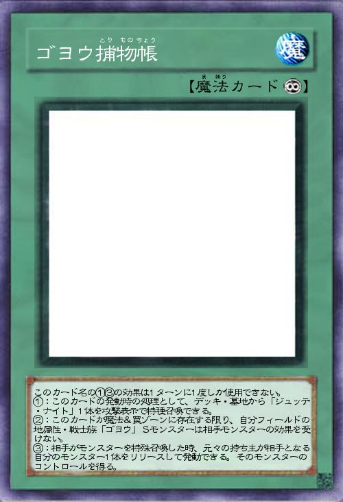| このカード名の①③の効果は1ターンに1度しか使用できない。 ①:このカードの発動時の処理として、デッキ・墓地から「ジュッテ・ナイト」1体を攻撃表示で特種召喚できる。 ②:このカードが魔法&罠ゾーンに存在する限り、自分フィールドの地属性・戦士族「ゴヨウ」Sモンスターは相手モンスターの効果を受けない。 ③:相手がモンスターを特殊召喚した時、元々の持ち主が相手となる自分のモンスター1体をリリースして発動できる。そのモンスターのコントロールを得る。 | |||