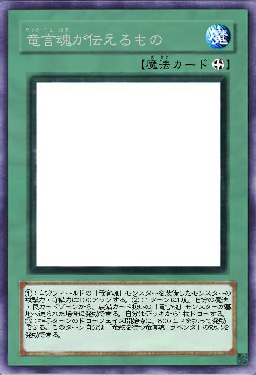 竜言霊の装備モンスターの攻守をアップする効果、ドロー、ラベンダの相手ターン発動の3つの効果を持つ。