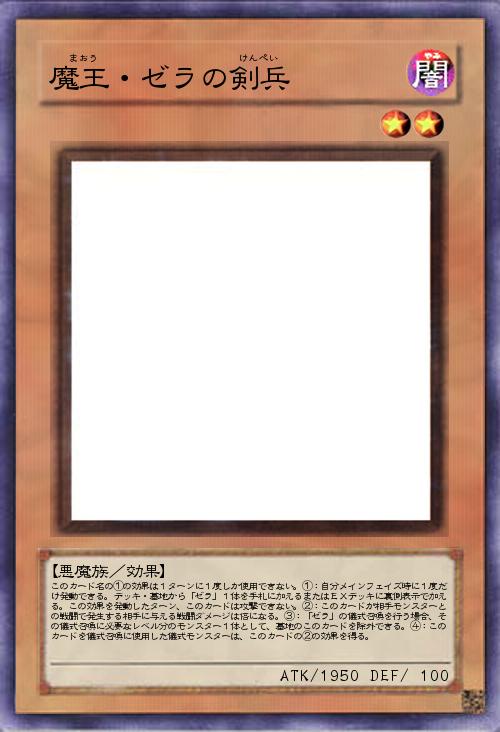 | このカード名の①の効果は1ターンに1度しか使用できない。①:自分メインフェイズ時に1度だけ発動できる。デッキ・墓地から「ゼラ」1体を手札に加えるまたはEXデッキに裏側表示で加える。この効果を発動したターン、このカードは攻撃できない。②:このカードが相手モンスターとの戦闘で発生する相手に与える戦闘ダメージは倍になる。③:「ゼラ」の儀式召喚を行う場合、その儀式召喚に必要なレベル分のモンスター1体として、墓地のこのカードを除外できる。④:このカードを儀式召喚に使用した儀式モンスターは、このカードの②の効果を得る。 | |||