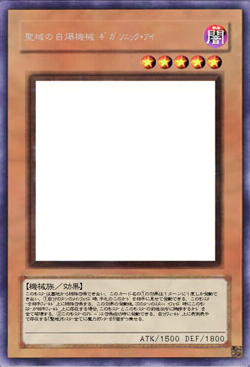 | このモンスタ-は墓地から特殊召喚できない.このカード名の①の効果は1ターンに1度しか発動できない.①自分のタ-ンのメインフェイズ時,手札のこのカ-ドを相手に見せて発動できる.このモンスタ-を相手フィ-ルド上に特殊召喚する.この効果の発動後,次のタ-ンのスタンバイフェイズ時にこのモンスタ-が相手フィ-ルド上に存在する場合,このモンスタ-とこのモンスタ-の前後左右に隣接するカ-ドを全て破壊する.②このモンスタ-のアドバンス召喚成功時に発動できる.自分フィ-ルド上に表側表示で存在する「聖域」モンスタ-全てに魔力カウンタ-を5個ずつ乗せる. | |||