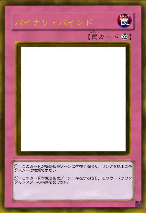 | ①:このカードが魔法&罠ゾーンに存在する限り、リンク3以上のモンスターは攻撃できない。 ②:このカードが魔法&罠ゾーンに存在する限り、このカードはリンクモンスターの効果を受けない。 | |||