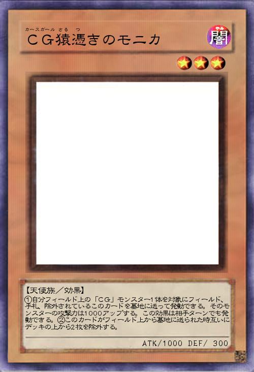| ①自分フィールド上の「CG」モンスター1体を対象にフィールド、手札、除外されているこのカードを墓地に送って発動できる。そのモンスターの攻撃力は1000アップし、ターン終了時まで魔法、罠カードの効果で破壊されない。この効果は相手ターンでも発動できる。②このカードがフィールド上から墓地に送られた時互いにデッキの上から2枚を除外する。 | |||