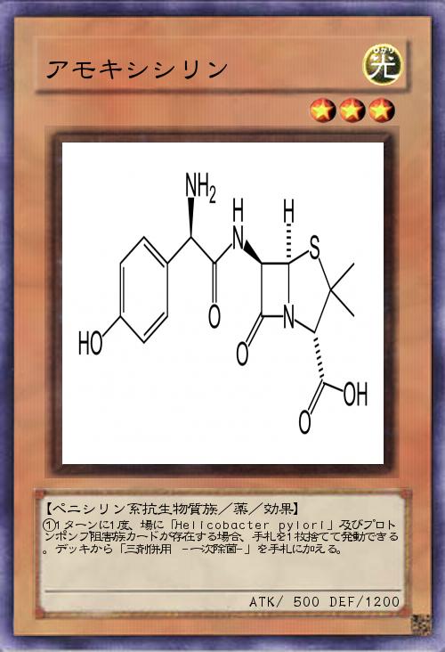 効果はアモキシシリンといえば3剤併用というのを表す効果です。ヘリコバクターピロリは強力なカードですので、このカードからコンボをつなげると強いのかなと思います。」(2017-11-09 21:56)