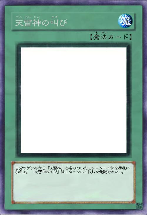 | 自分のデッキから「天雷神」と名のついたモンスター1体を手札に加える。「天雷神の叫び」は1ターンに1枚しか発動できない。 | |||