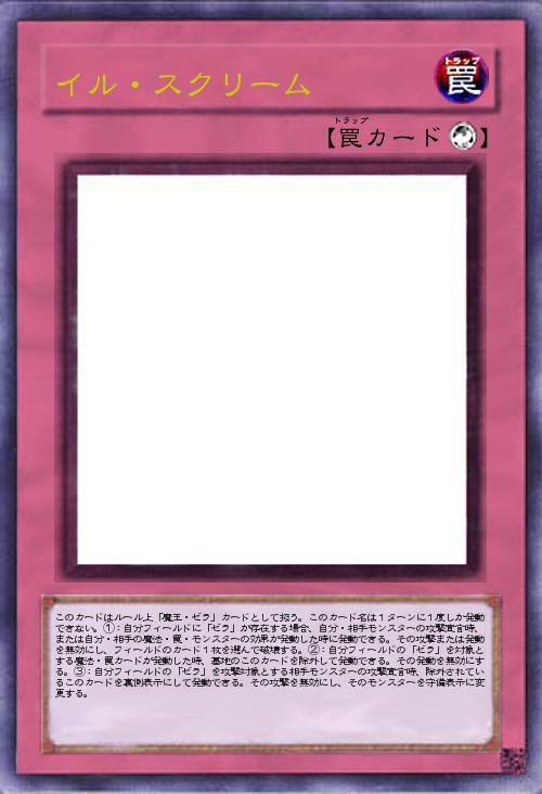 | このカードはルール上「魔王・ゼラ」カードとして扱う。このカード名は1ターンに1度しか発動できない。①:自分フィールドに「ゼラ」が存在する場合、自分・相手モンスターの攻撃宣言時、または自分・相手の魔法・罠・モンスターの効果が発動した時に発動できる。その攻撃または発動を無効にし、フィールドのカード1枚を選んで破壊する。②:自分フィールドの「ゼラ」を対象とする魔法・罠カードが発動した時、墓地のこのカードを除外して発動できる。その発動を無効にする。③:自分フィールドの「ゼラ」を攻撃対象とする相手モンスターの攻撃宣言時、除外されているこのカードを裏側表示にして発動できる。その攻撃を無効にし、そのモンスターを守備表示に変更する。 | |||