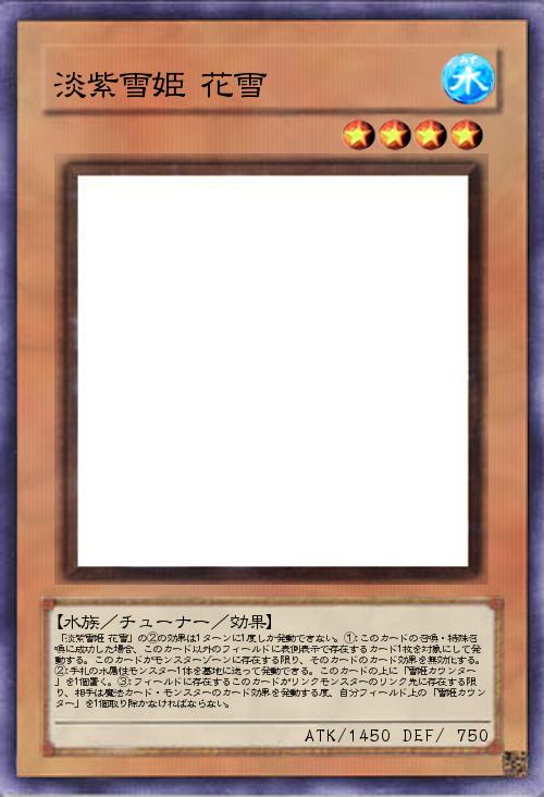 | 「淡紫雪姫 花雪」の②の効果は1ターンに1度しか発動できない。①:このカードの召喚・特殊召喚に成功した場合、このカード以外のフィールドに表側表示で存在するカード1枚を対象にして発動する。このカードがモンスターゾーンに存在する限り、そのカードのカード効果を無効化する。②:手札の水属性モンスター1体を墓地に送って発動できる。このカードの上に「雪姫カウンター」を1個置く。③:フィールドに存在するこのカードがリンクモンスターのリンク先に存在する限り、相手は魔法カード・モンスターのカード効果を発動する度、自分フィールド上の「雪姫カウンター」を1個取り除かなければならない。 | |||