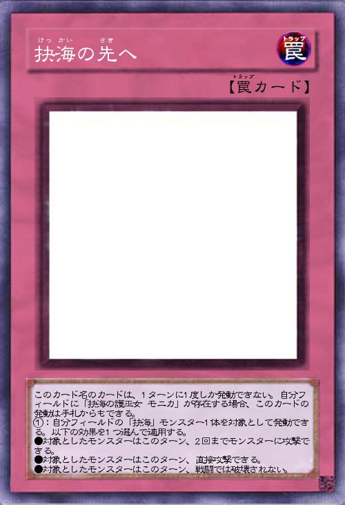 | このカード名のカードは、1ターンに1度しか発動できない。自分フィールドに「抉海の護巫女 モニカ」が存在する場合、このカードの発動は手札からもできる。 ①:自分フィールドの「抉海」モンスター1体を対象として発動できる。以下の効果を1つ選んで適用する。 ●対象としたモンスターはこのターン、2回までモンスターに攻撃できる。 ●対象としたモンスターはこのターン、直接攻撃できる。 ●対象としたモンスターはこのターン、戦闘では破壊されない。 | |||