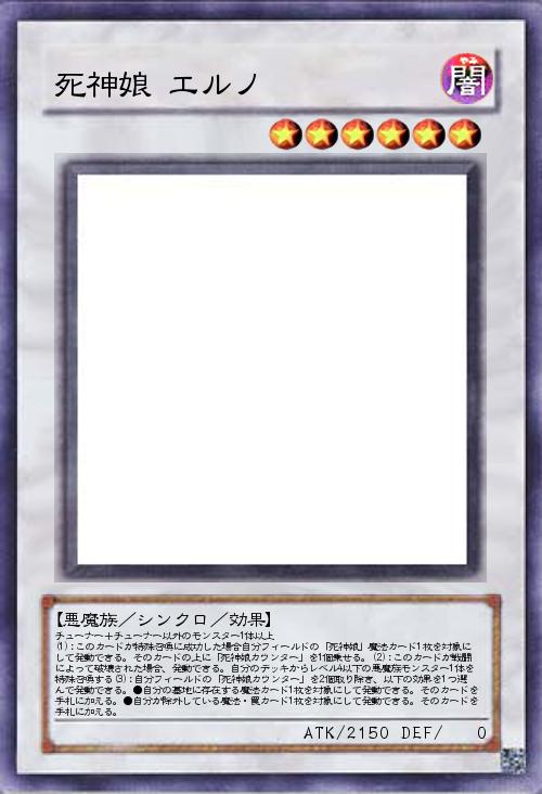 | チューナー+チューナー以外のモンスター1体以上 (1):このカードが特殊召喚に成功した場合自分フィールドの「死神娘」魔法カード1枚を対象にして発動できる。そのカードの上に「死神娘カウンター」を1個乗せる。(2):このカードが戦闘によって破壊された場合、発動できる。自分のデッキからレベル4以下の悪魔族モンスター1体を特殊召喚する(3):自分フィールドの「死神娘カウンター」を2個取り除き、以下の効果を1つ選んで発動できる。●自分の墓地に存在する魔法カード1枚を対象にして発動できる。そのカードを手札に加える。●自分が除外している魔法・罠カード1枚を対象にして発動できる。そのカードを手札に加える。 | |||