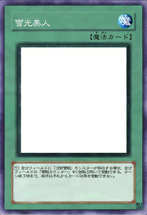 | ①:自分フィールドに「淡紫雪姫」モンスターが存在する場合、自分フィールドの「雪姫カウンター」を3個取り除いて発動できる。ターン終了時まで、相手は手札からカード効果を発動できない。 | |||