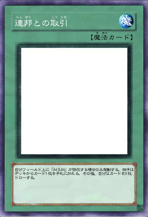 | 自分フィールド上に「MSM」が存在する場合のみ発動する。相手はデッキからカード1枚を手札に加える。その後、自分はカードを3枚ドローする。 | |||