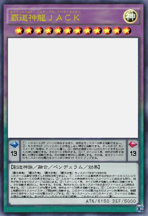 覇王神龍ってのもなんか変だし、こうなりました。「起源の輪の支配者」的な意味を込めジェネックス・アーク・カーネルの名をつけました。